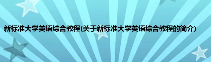 本文关于新标准大学英语综合教程的简介就讲解完毕,希望对大家有所帮助。
