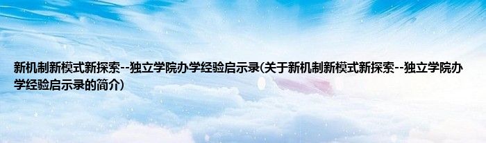 大家好,新机制新模式新探索--独立学院办学经验启示录,关于新机制新模式新探索--独立学院办学经验启示录的简介很多人还不知道,现在让我们一起来看看吧!