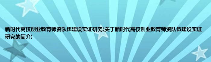 新时代高校创业教育师资队伍建设实证研究(关于新时代高校创业教育师资队伍建设实证研究的简介)
