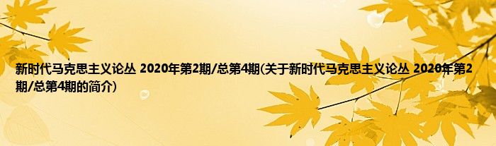 本文关于新时代马克思主义论丛 2020年第2期/总第4期的简介就讲解完毕,希望对大家有所帮助。