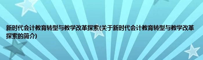 新时代会计教育转型与教学改革探索(关于新时代会计教育转型与教学改革探索的简介)