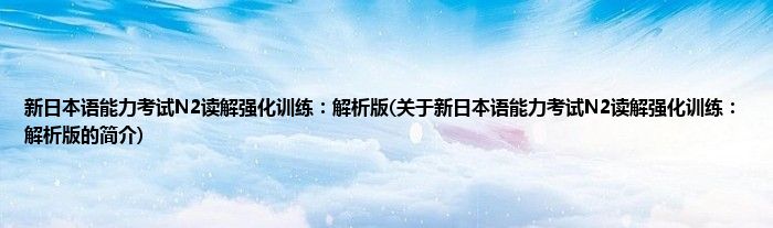 大家好,新日本语能力考试N2读解强化训练:解析版,关于新日本语能力考试N2读解强化训练:解析版的简介很多人还不知道,现在让我们一起来看看吧!