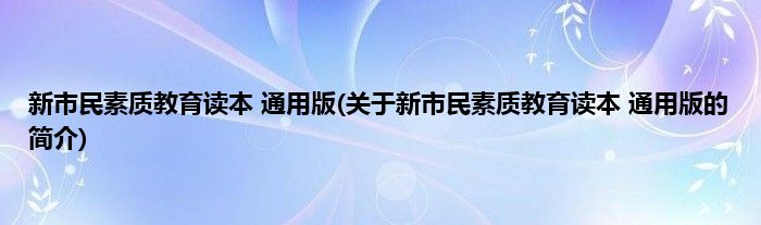 本文关于新市民素质教育读本 通用版的简介就讲解完毕,希望对大家有所帮助。
