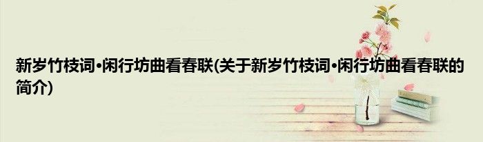 本文关于新岁竹枝词·闲行坊曲看春联的简介就讲解完毕,希望对大家有所帮助。