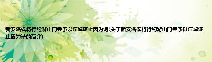 大家好,新安潘侯将行约游山门寺予以泞淖遂止因为诗,关于新安潘侯将行约游山门寺予以泞淖遂止因为诗的简介很多人还不知道,现在让我们一起来看看吧!