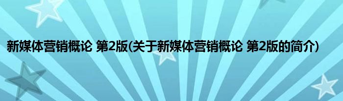 本文关于新媒体营销概论 第2版的简介就讲解完毕,希望对大家有所帮助。