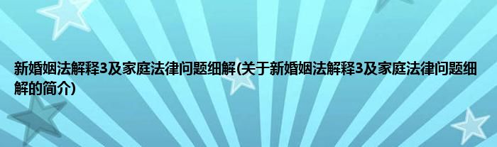 本文关于新婚姻法解释3及家庭法律问题细解的简介就讲解完毕,希望对大家有所帮助。