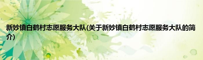 本文关于新妙镇白鹤村志愿服务大队的简介就讲解完毕,希望对大家有所帮助。