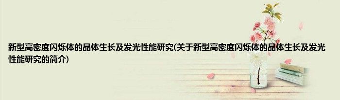 本文关于新型高密度闪烁体的晶体生长及发光性能研究的简介就讲解完毕,希望对大家有所帮助。
