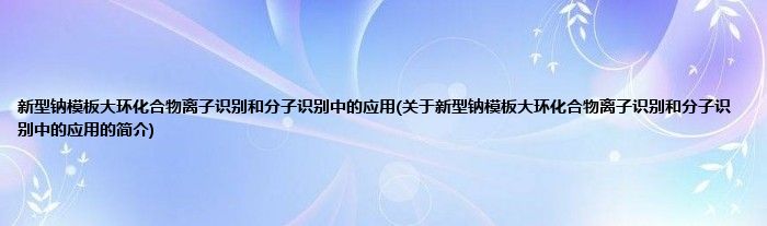 本文关于新型钠模板大环化合物离子识别和分子识别中的应用的简介就讲解完毕,希望对大家有所帮助。