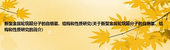 本文关于新型金属轮烷超分子的自组装、结构和性质研究的简介就讲解完毕,希望对大家有所帮助。