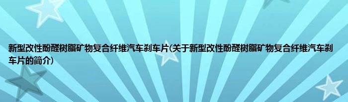 本文关于新型改性酚醛树脂矿物复合纤维汽车刹车片的简介就讲解完毕,希望对大家有所帮助。