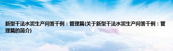 本文关于新型干法水泥生产问答千例:管理篇的简介就讲解完毕,希望对大家有所帮助。