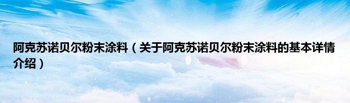 本文关于阿克苏诺贝尔粉末涂料的基本详情介绍就讲解完毕,希望对大家有所帮助。