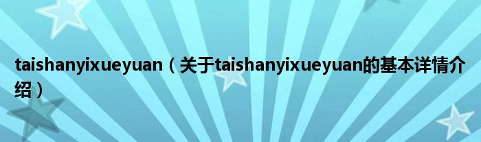 本文关于taishanyixueyuan的基本详情介绍就讲解完毕,希望对大家有所帮助。