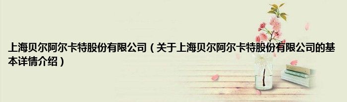 本文关于上海贝尔阿尔卡特股份有限公司的基本详情介绍就讲解完毕,希望对大家有所帮助。