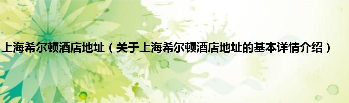 本文关于上海希尔顿酒店地址的基本详情介绍就讲解完毕,希望对大家有所帮助。