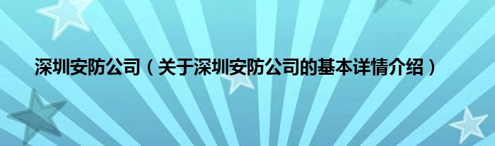 本文关于深圳安防公司的基本详情介绍就讲解完毕,希望对大家有所帮助。