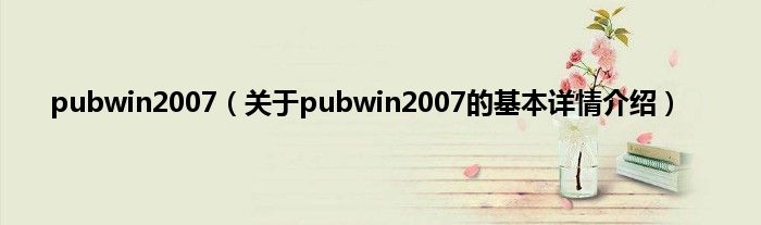 本文关于pubwin2007的基本详情介绍就讲解完毕,希望对大家有所帮助。