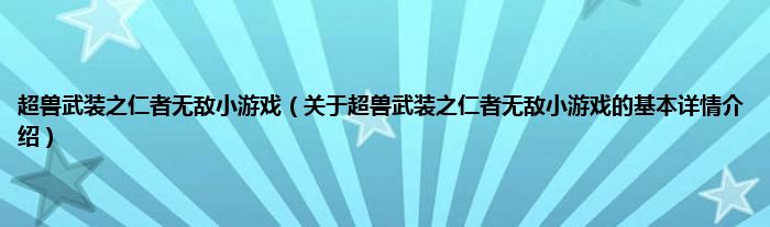本文关于超兽武装之仁者无敌小游戏的基本详情介绍就讲解完毕,希望对大家有所帮助。