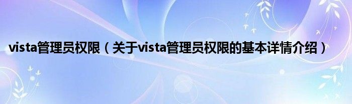本文关于vista管理员权限的基本详情介绍就讲解完毕,希望对大家有所帮助。