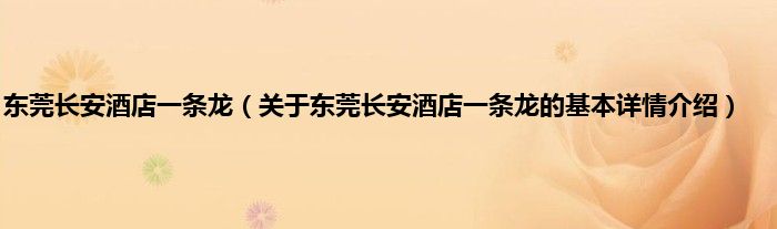 本文关于东莞长安酒店一条龙的基本详情介绍就讲解完毕,希望对大家有所帮助。