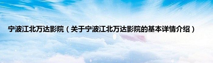 本文关于宁波江北万达影院的基本详情介绍就讲解完毕,希望对大家有所帮助。