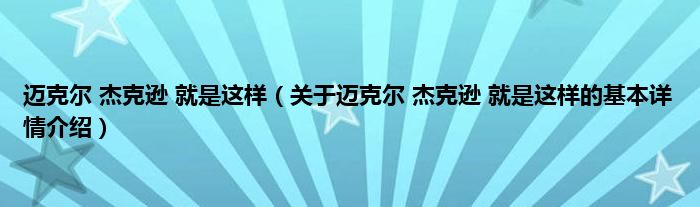 本文关于迈克尔 杰克逊 就是这样的基本详情介绍就讲解完毕,希望对大家有所帮助。
