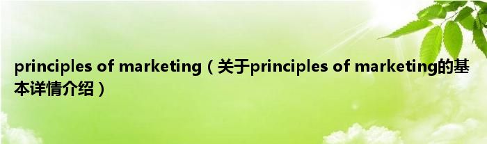 本文关于principles of marketing的基本详情介绍就讲解完毕,希望对大家有所帮助。