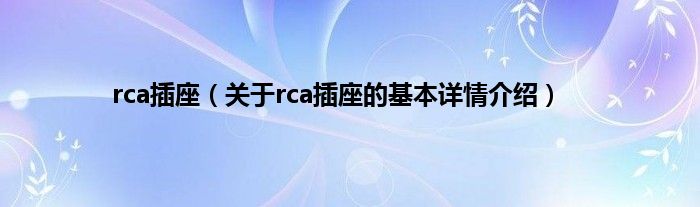 本文关于rca插座的基本详情介绍就讲解完毕,希望对大家有所帮助。