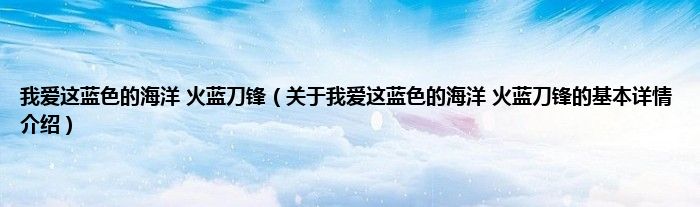 大家好我是小蝌蚪,我爱这蓝色的海洋 火蓝刀锋,关于我爱这蓝色的海洋 火蓝刀锋的基本详情介绍很多人还不知道,那么现在让我们一起来看看吧!