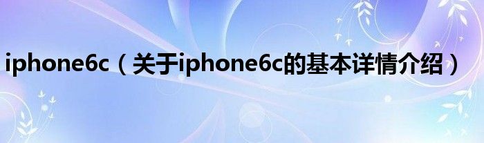 本文关于iphone6c的基本详情介绍就讲解完毕,希望对大家有所帮助。