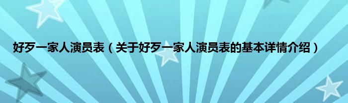本文关于好歹一家人演员表的基本详情介绍就讲解完毕,希望对大家有所帮助。