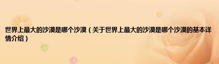 本文关于世界上最大的沙漠是哪个沙漠的基本详情介绍就讲解完毕,希望对大家有所帮助。