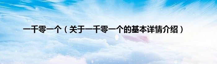 本文关于一千零一个的基本详情介绍就讲解完毕,希望对大家有所帮助。