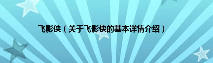 本文关于飞影侠的基本详情介绍就讲解完毕,希望对大家有所帮助。