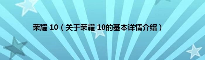 本文关于荣耀 10的基本详情介绍就讲解完毕,希望对大家有所帮助。