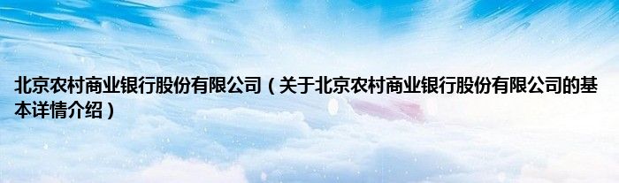 本文关于北京农村商业银行股份有限公司的基本详情介绍就讲解完毕,希望对大家有所帮助。