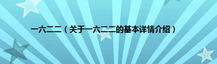 本文关于一六二二的基本详情介绍就讲解完毕,希望对大家有所帮助。