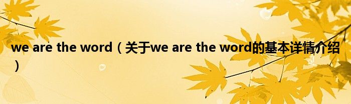 本文关于we are the word的基本详情介绍就讲解完毕,希望对大家有所帮助。