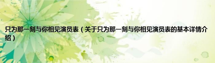 本文关于只为那一刻与你相见演员表的基本详情介绍就讲解完毕,希望对大家有所帮助。