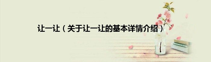 本文关于让一让的基本详情介绍就讲解完毕,希望对大家有所帮助。