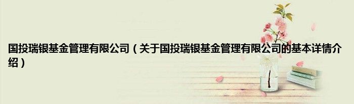本文关于国投瑞银基金管理有限公司的基本详情介绍就讲解完毕,希望对大家有所帮助。