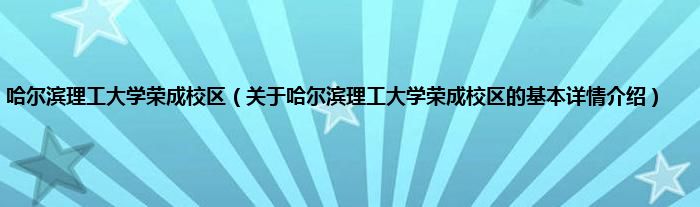 本文关于哈尔滨理工大学荣成校区的基本详情介绍就讲解完毕,希望对大家有所帮助。