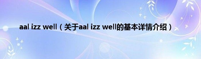 大家好我是小蝌蚪,aal izz well,关于aal izz well的基本详情介绍很多人还不知道,那么现在让我们一起来看看吧!