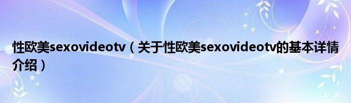 本文关于性欧美sexovideotv的基本详情介绍就讲解完毕,希望对大家有所帮助。