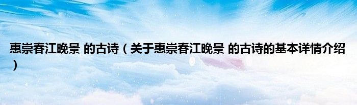 本文关于惠崇春江晚景 的古诗的基本详情介绍就讲解完毕,希望对大家有所帮助。