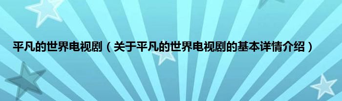 本文关于平凡的世界电视剧的基本详情介绍就讲解完毕,希望对大家有所帮助。