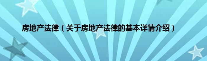 本文关于房地产法律的基本详情介绍就讲解完毕,希望对大家有所帮助。
