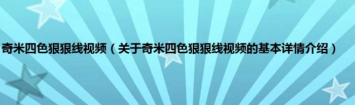 本文关于奇米四色狠狠线视频的基本详情介绍就讲解完毕,希望对大家有所帮助。